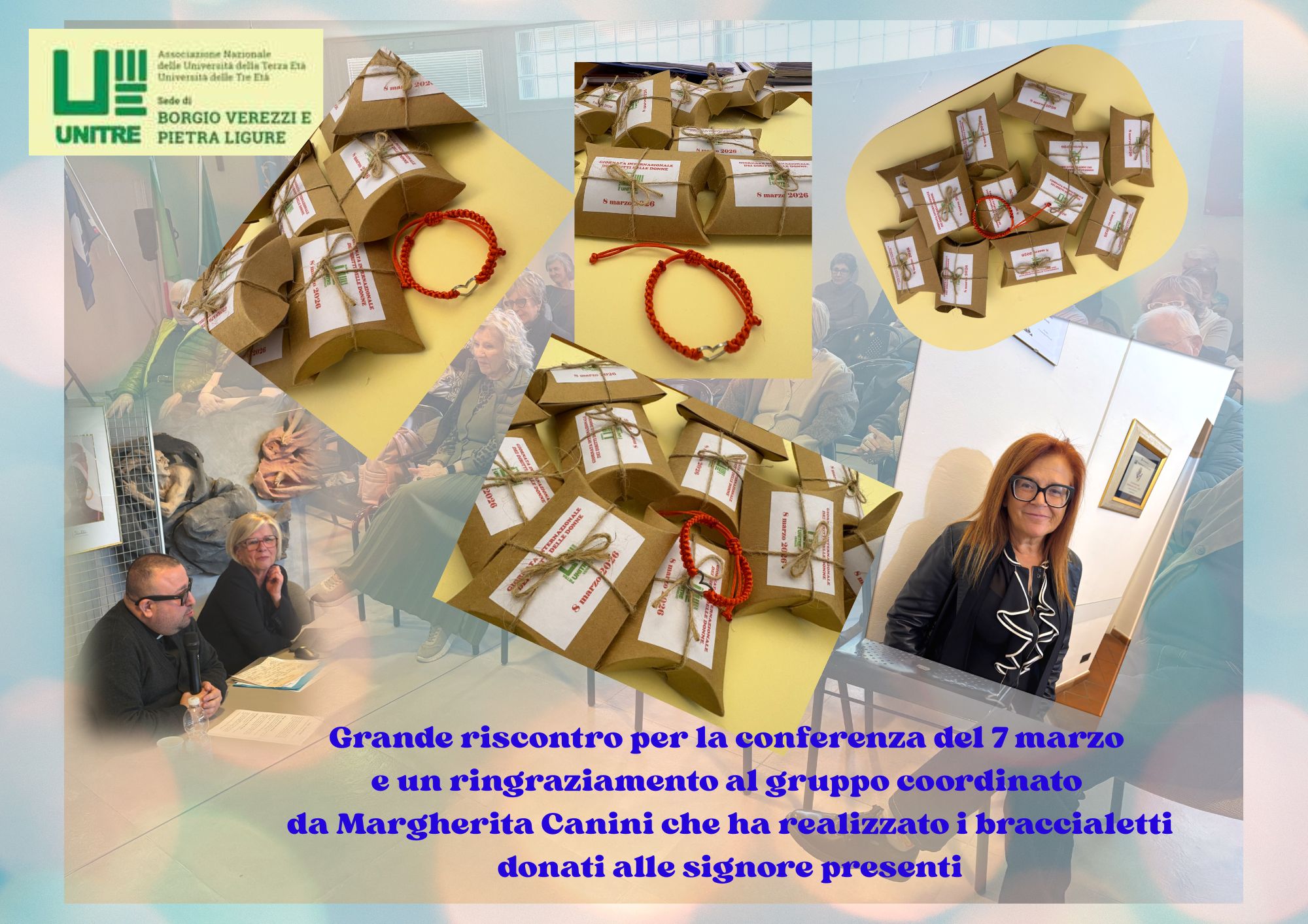Grande riscontro per la conferenza del 7 marzo e un ringraziamento al gruppo coordinato da Margherita Canini che ha realizzato i braccialetti che sono stati donati alle signore presenti.