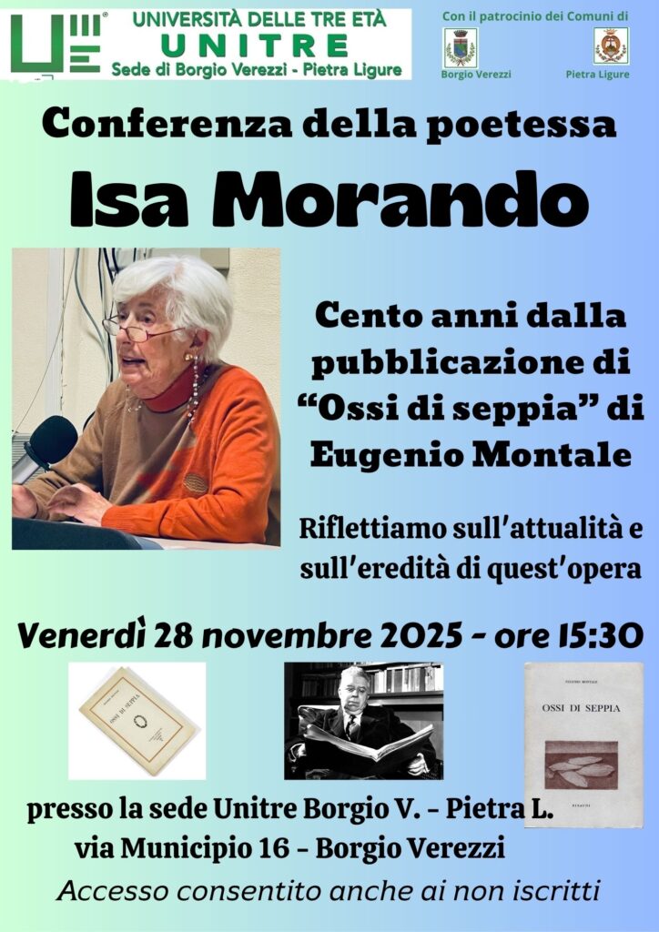 Venerdì 28 novembre 2025, alle ore 15:30, presso la sede Unitre in via Municipio 16 a Borgio Verezzi, abbiamo organizzato una conferenza con la poetessa Isa Morando per ricordare l’evento, ma soprattutto per riflettere sull’attualità e sull’eredità di quest’opera.
