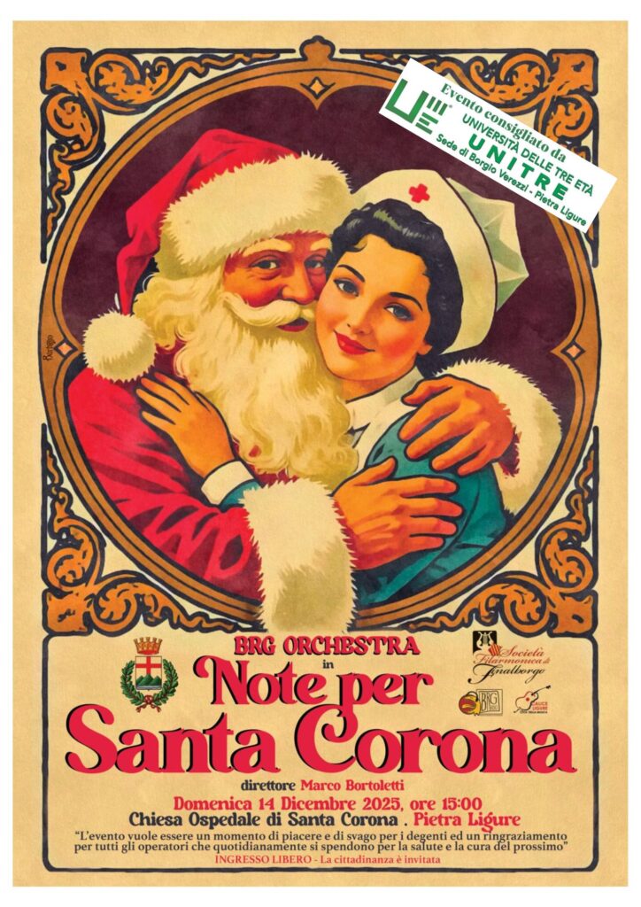 Con piacere vi invitiamo al  Concerto di Natale “Note per Santa Corona”  che si terrà domenica 14 dicembre alle ore 15:00 presso la Chiesa dell’Ospedale Santa Corona a Pietra Ligure.