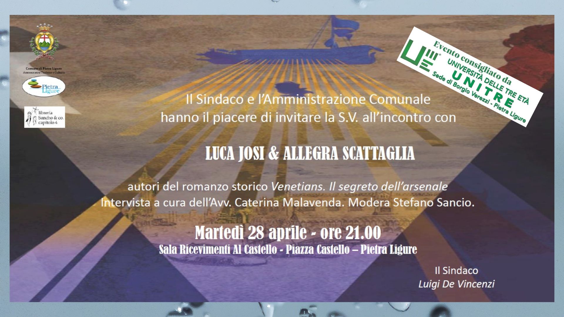 Sperando di fare cosa gradita, abbiamo il piacere di invitarvi all’incontro con Luca Josi e Allegra Scattaglia, autori del romanzo storico “Venetians. Il segreto dell’arsenale“.