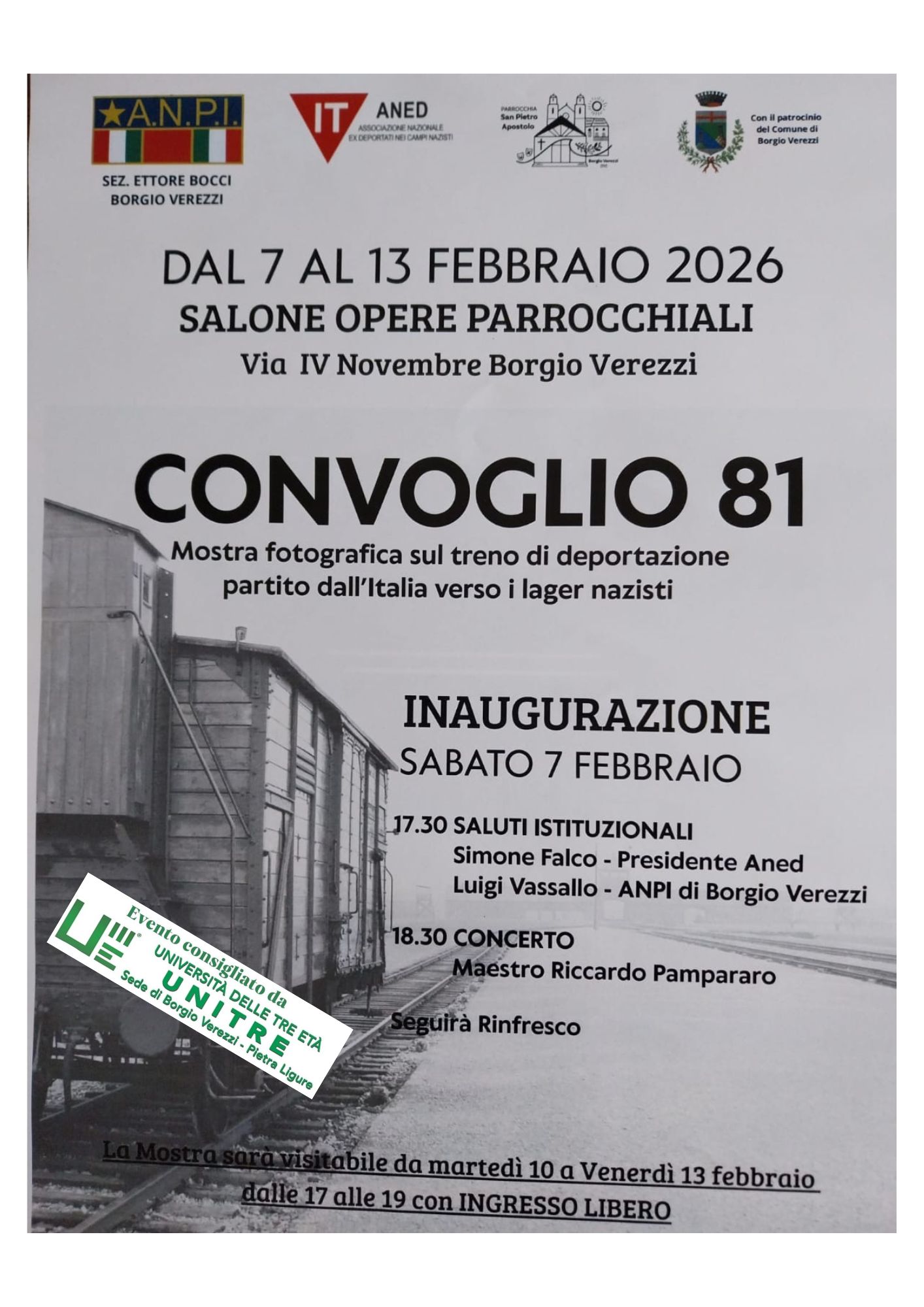 Dal 7 al 13 febbraio 2026 il salone delle Opere Parrocchiali di Borgio Verezzi ospiterà la mostra fotografica “Convoglio 81”, dedicata al treno di deportazione partito dall’Italia verso i lager nazisti.