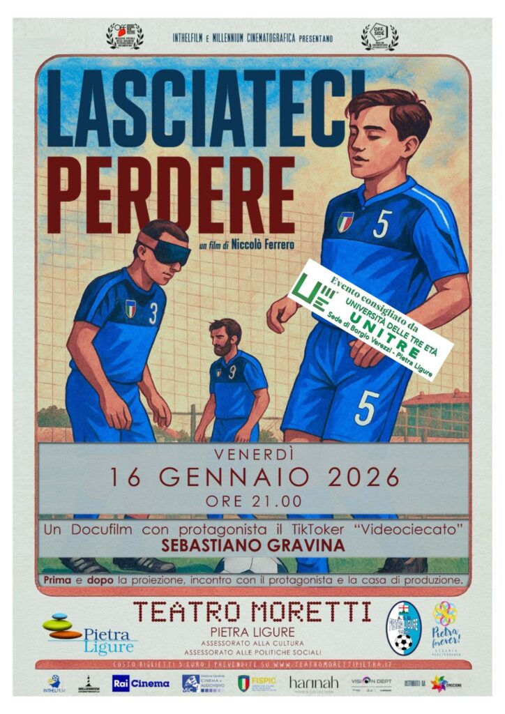 L’emozionante documentario sulla nazionale italiana non vedenti, diretto da Niccolò Ferrero, in visione venerdì 16 gennaio 2026, alle ore 21:00, al Cinema-Teatro Comunale G. Moretti di Pietra Ligure. Una storia di sogni, sfide e autoironia che ridefinisce il concetto stesso di “vedere”.