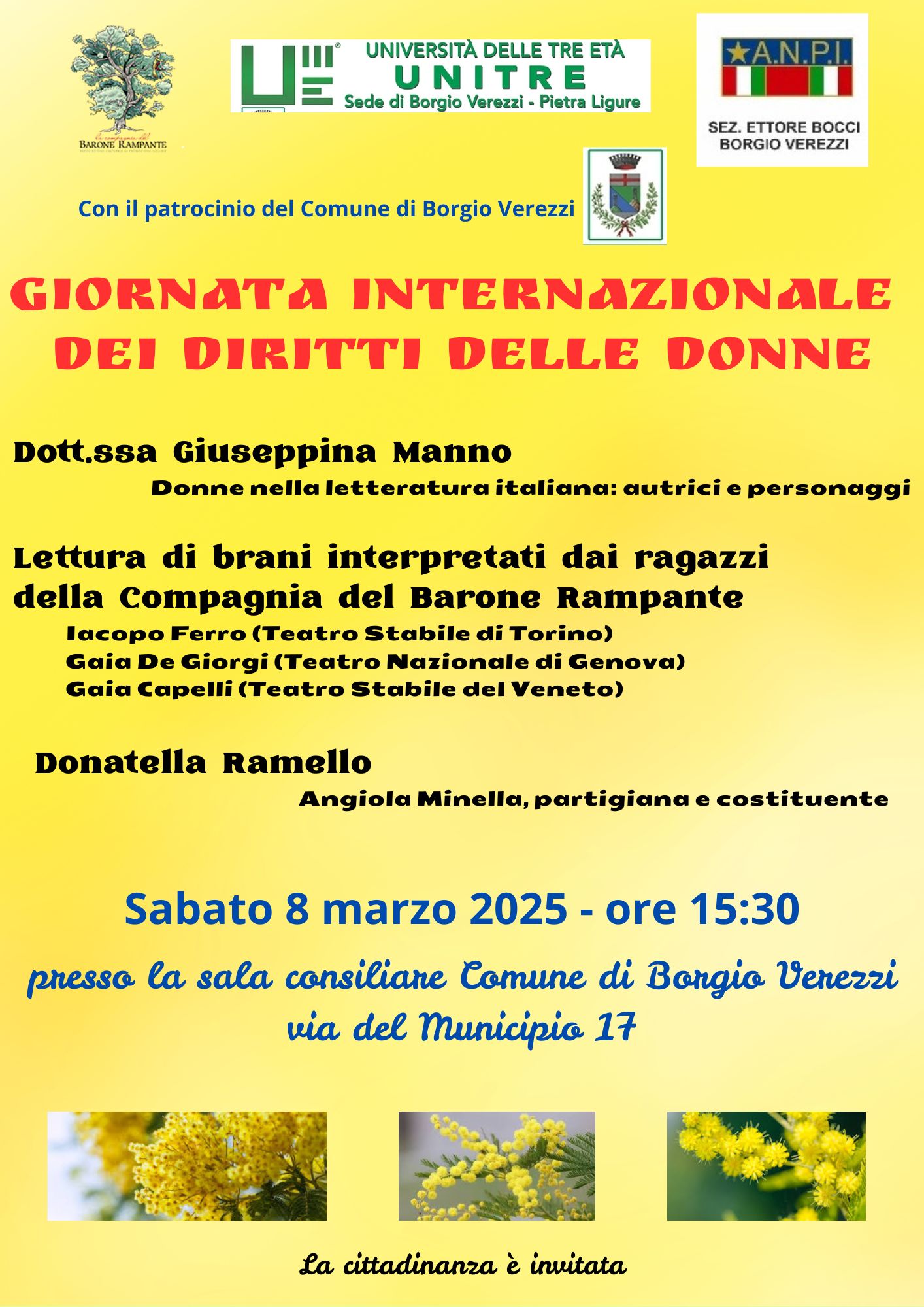 L’Unitre Borgio Verezzi e Pietra Ligure, l’A.N.P.I. sez. E. Bocci Borgio Verezzi e la Compagnia Teatrale Barone Rampante organizzano un pomeriggio formativo con il seguente programma: