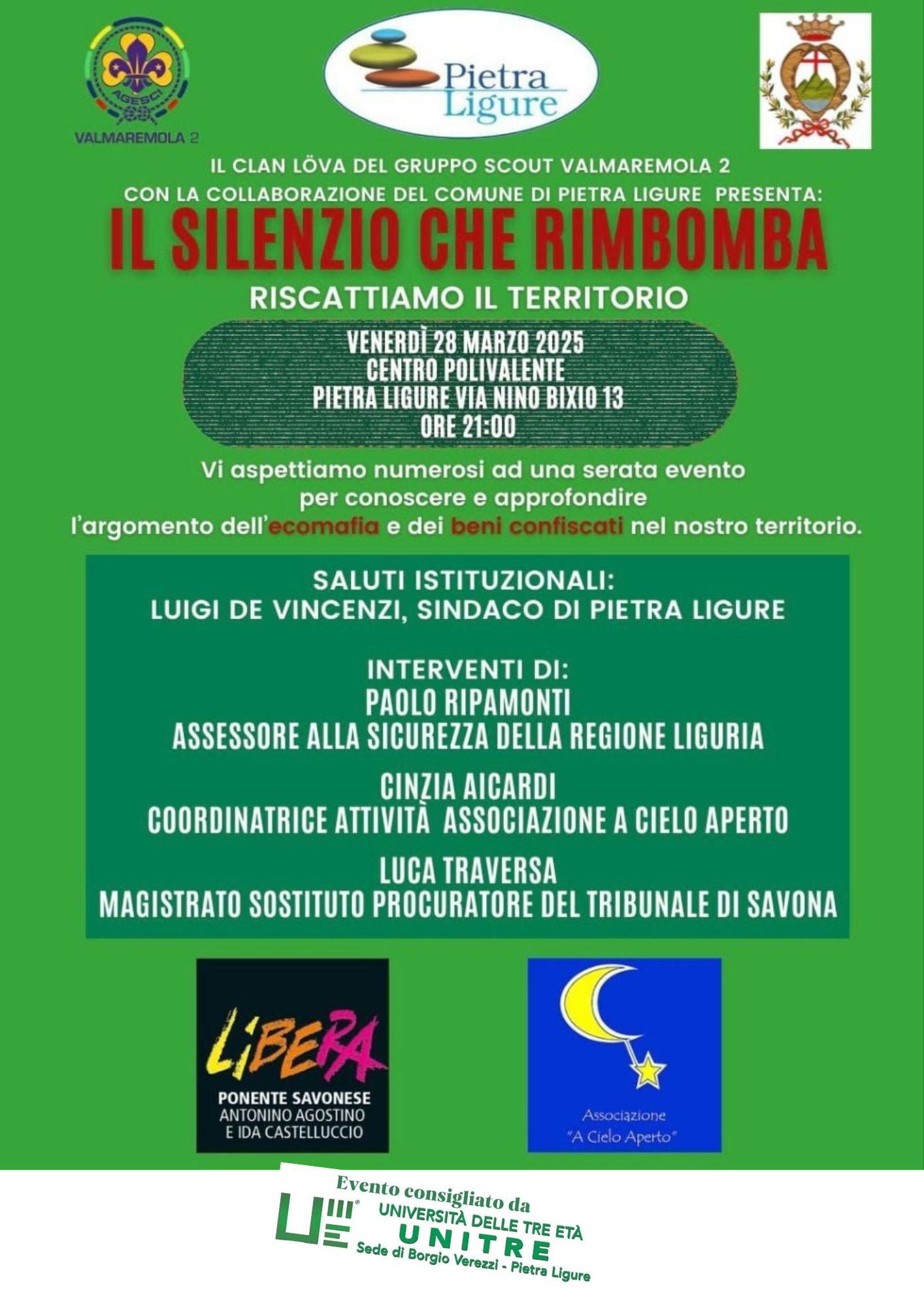 Grazie alla preziosa collaborazione del Comune di Pietra Ligure, ai loro ospiti e a una serata incentrata sulla divulgazione sperando che la stessa consapevolezza arrivi anche a tutti noi.